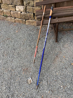 Jana wusste, wo man viele Schneckenhäuser findet. Aber alle in Hecken und Gestrüpp. Also nahmen wir uns Handwerkzeug zum "Bergen" mit.