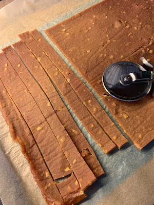 Platten wurden dann mit dem Pizzarädchen in kleine Stücke geschnitten.